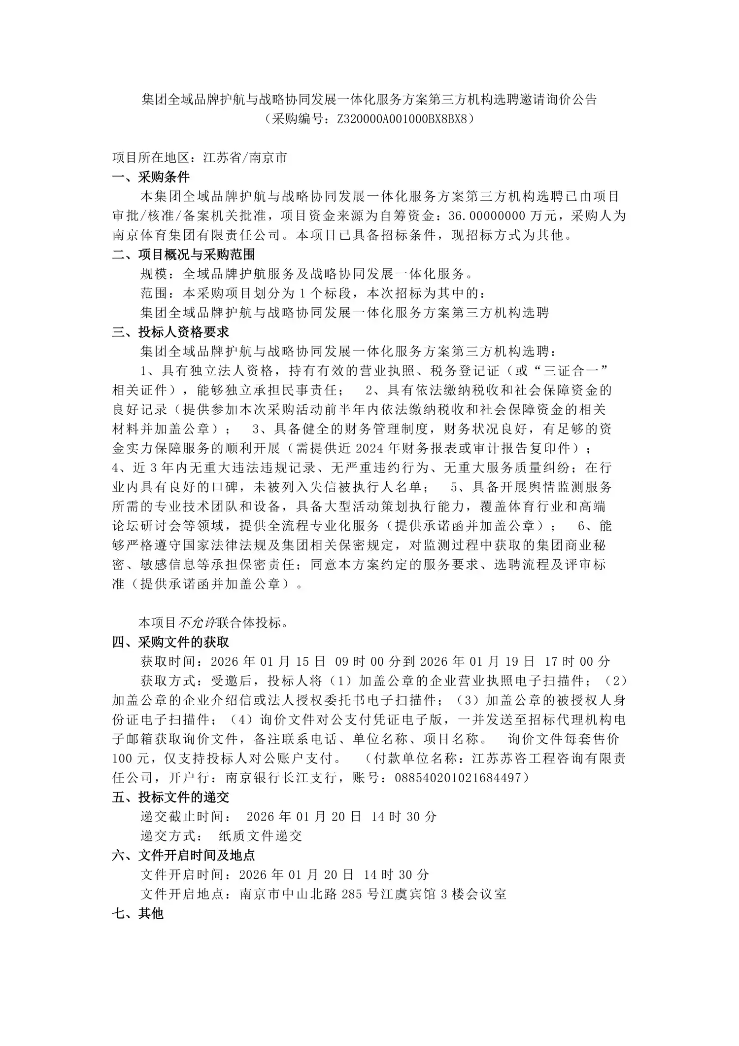 集团全域品牌护航与战略协同发展一体化服务方案第三方机构选聘邀请询价公告