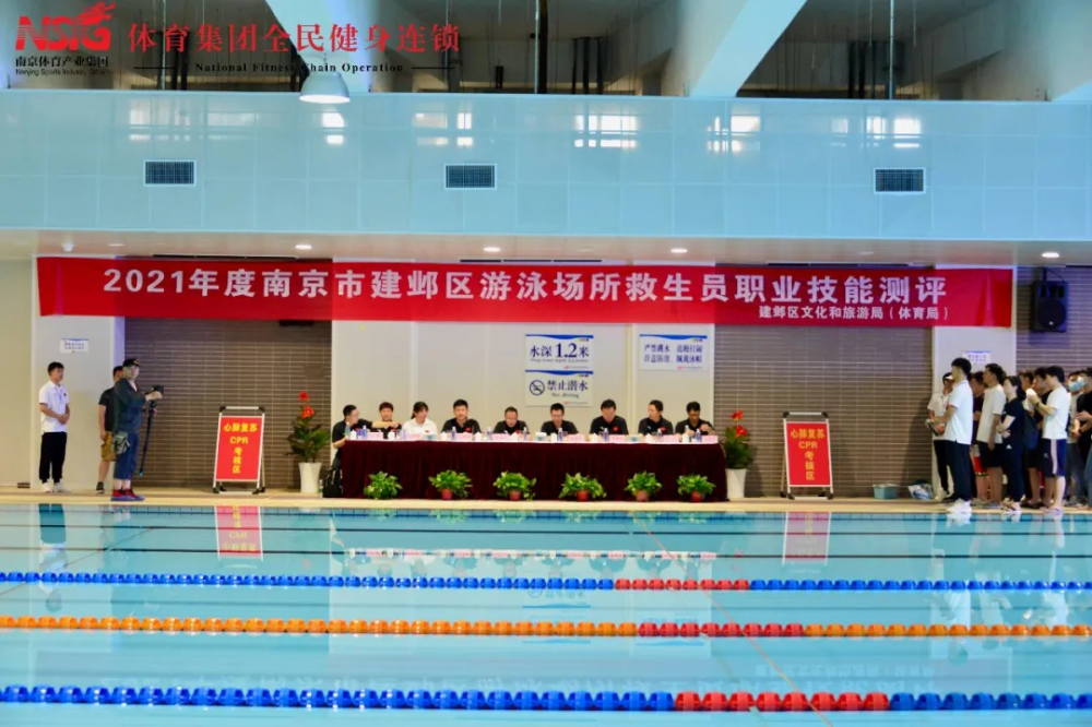 2021-06-8 3 611为进一步加强建邺区游泳场所安全生产工作,夯实企业主体安全生产责任,确保全区游泳救生员职业技能达到上岗标准,落实全国第20个“安全生产月”活动要求,2021年6月5日-6日,经南京市体育局指导,由南京全民健身中心有限公司承办的“2021年度南京市建邺区游泳场所救生员职业技能测评”在体育集团全民健身连锁005—南京河西外国语学校游泳馆举行。南京市建邺区文化和旅游局领导、南京市体育市场监督管理办公室领导、南京市游泳救生培训基地考评团队等作为评委、嘉宾莅临测评活动。