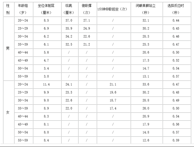[3]国家体育总局等10个部门联合于2003年颁布实施《国民体质测定标准》,适用于3~6岁,20~69岁国民个体的身体形态、机能和素质的测试与评定;综合评级分为优秀、良好、合格和不合格四个等级。