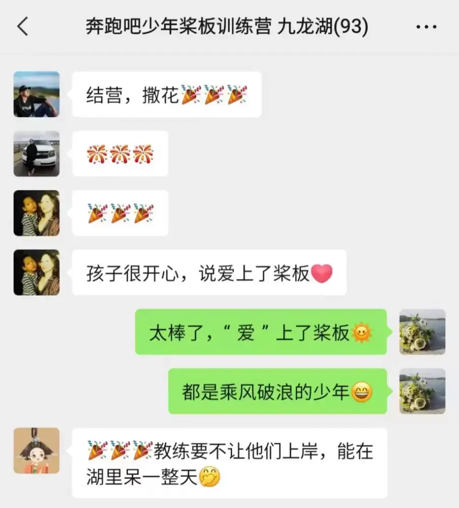 孩子们的进步和收获,让家长们很惊喜,他们在群内分享了孩子们在活动中的照片和视频。家长们纷纷表示,这个活动不仅让孩子们掌握了桨板运动技能,而且这样的户外运动对孩子的身心发展有很大的益处。