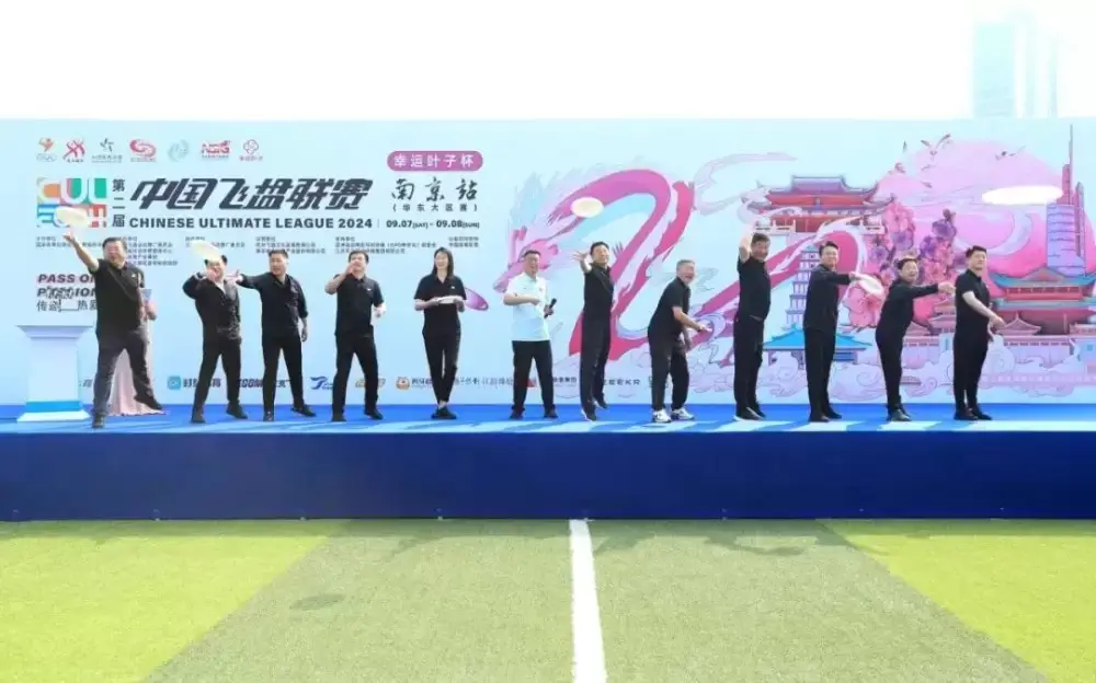 2024-09-8 9 3967日上午,“幸运叶子杯”第二届中国飞盘联赛•南京站(华东大区赛)比赛,在南京乐创汇体育场开赛。本次大赛由国家体育总局社会体育指导中心主办,全国飞盘运动推广委员会、江苏省社会体育管理中心、南京体育产业集团、南京江北新区宣传和统战部承办,江苏省飞盘运动推广委员会协办,杭州飞盘文化发展有限公司、南京紫金体育产业股份有限公司运营,亚洲运动用品与时尚展(ISPO南京站)组委会、江苏天马网络科技集团有限公司支持。