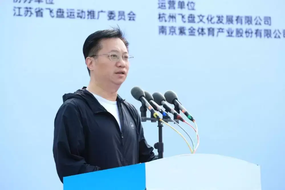 国家体育总局社体中心尹国臣副主任、江苏省体育局二级巡视员范金华、南京市政府副秘书长戴兴海,以及来自国家体育总局社会体育指导中心、全国飞盘运动推广委员会、江苏省社会体育管理中心、江苏省飞盘运动推广委员会、江北新区、南京体育学院、市教育局、市体育局、市体育产业集团、江苏天马科技集团等相关单位领导出席了本次比赛开幕式。