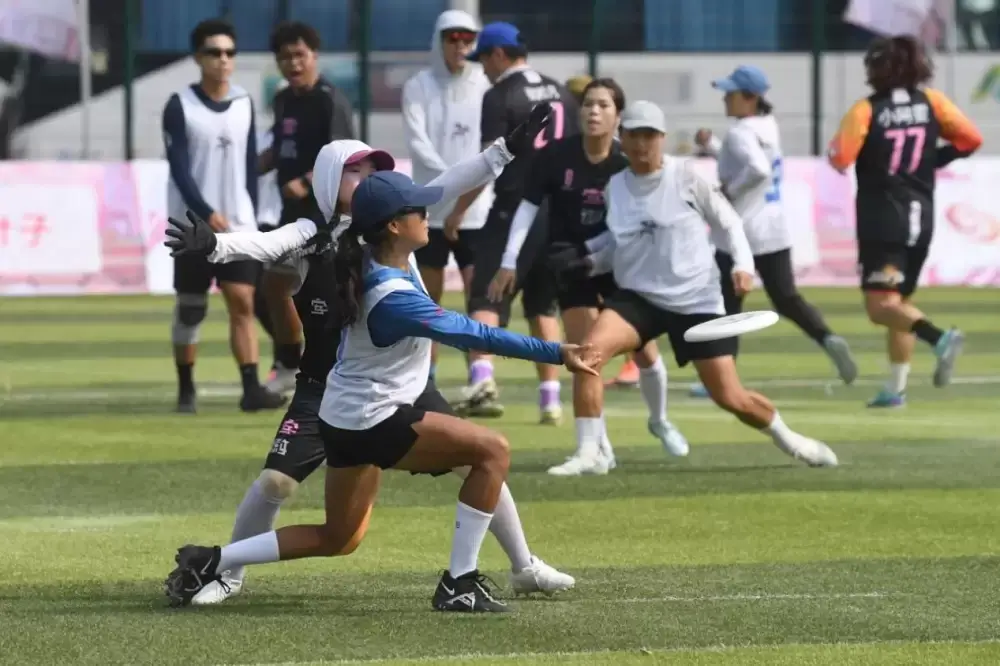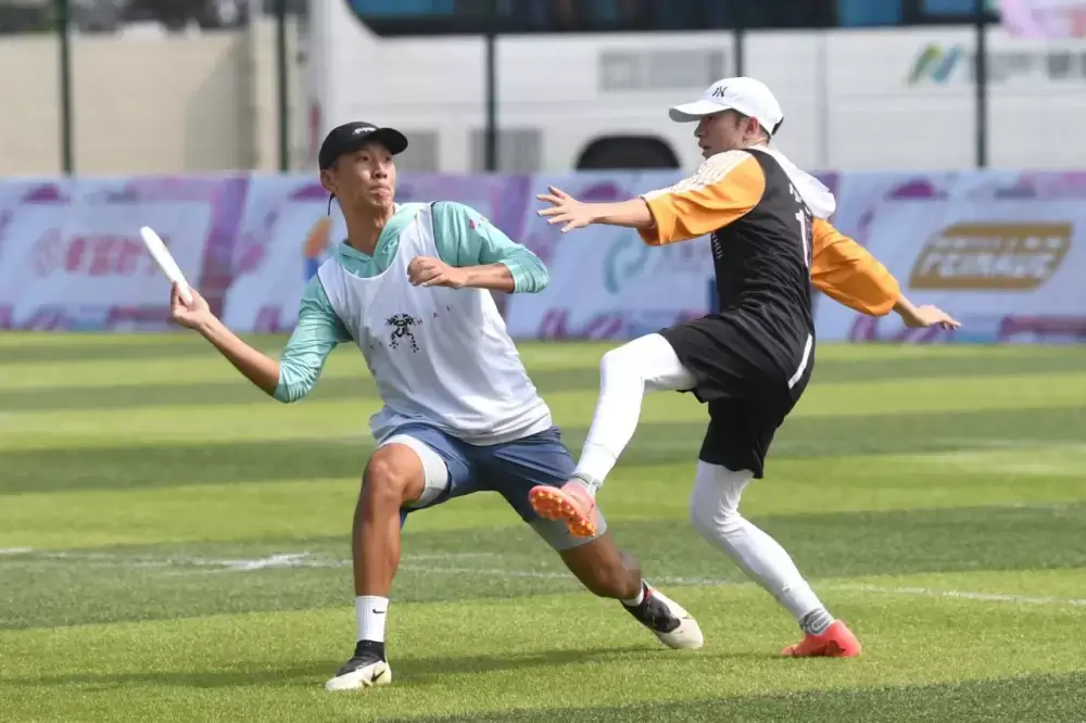 飞盘运动作为一项集竞技性、趣味性、社交性于一体的新兴时尚体育项目,赛场两端各有一块得分区,选手通过各种战术方式的跑动、传递飞盘,让自己的队友在得分区接住飞盘从而得分。飞盘具有门槛低、易上手的特点,吸引了各个年龄层的参与者。无论是青少年还是中老年人,都能在飞盘场上找到乐趣。