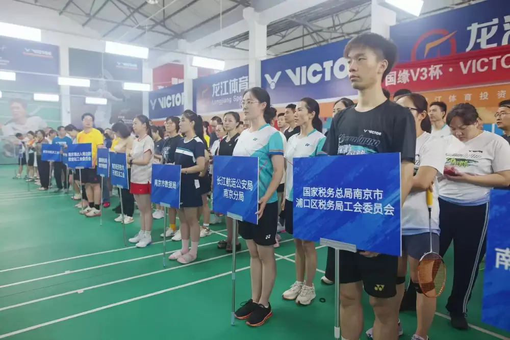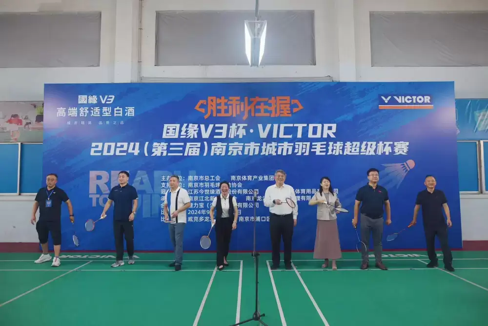 2024-09-12 10 4152024 年 9 月 11 日,星期三,“国缘 V3 杯”·VICTOR 2024(第三届)南京市城市羽毛球超级杯赛在江北新区威克多龙江羽毛球馆璀璨开幕。本次赛事由南京市总工会与南京体育产业集团携手主办,江北新区总工会和南京龙江体育投资管理有限公司联合承办,吸引了全市近 40 家机关企事业单位的代表队、400 名羽毛球爱好者同场竞技,堪称全市职工羽毛球爱好者的年度盛宴。