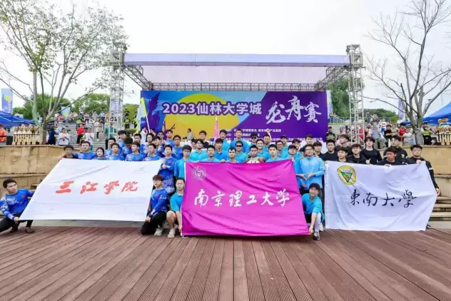 仙林大学城龙舟赛自举办以来,已经成为一个传统与现代交融的标志性活动。2023年9月16日,由仙林大学城管委会、南京体育产业集团主办的仙林大学城龙舟赛,在青奥水上运动中心羊山湖基地成功举办。赛事当天共有16支来自各高校及社企单位的龙舟队伍,共计近300人汇聚于此,上演“群雄争霸”。