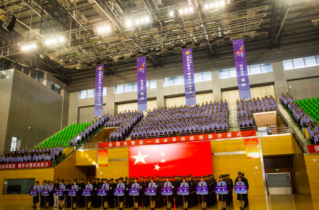 上午9时,伴着雄壮的中华人民共和国国歌,全国水警第一届业务技能竞赛开幕式在江苏警官学院浦口校区警体馆举行,来自公安部治安局、全国水上治安协调小组办公室、江苏省公安厅水警总队、南京市公安局等单位的领导、全国水警系统参赛及观摩代表队、省市两级公安机关、公安学校学员等共计500余人参加开幕式。