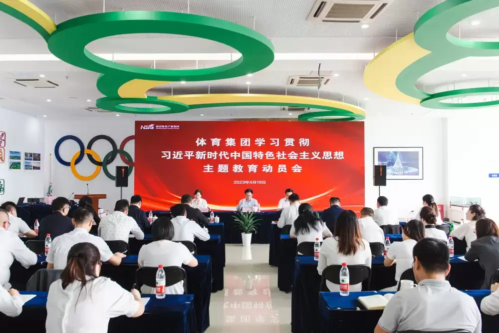 2023-04-21 7 0634月19日上午,体育集团召开学习贯彻习近平新时代中国特色社会主义思想主题教育动员会。会议深入学习贯彻习近平总书记在中央主题教育工作会议上的重要讲话精神,认真落实党中央和省、市委要求,对集团开展主题教育进行部署。集团党委书记、董事长、主题教育领导小组组长章小奇作动员讲话,市委主题教育第十巡回指导组组长孔庆龙出席会议并讲话。