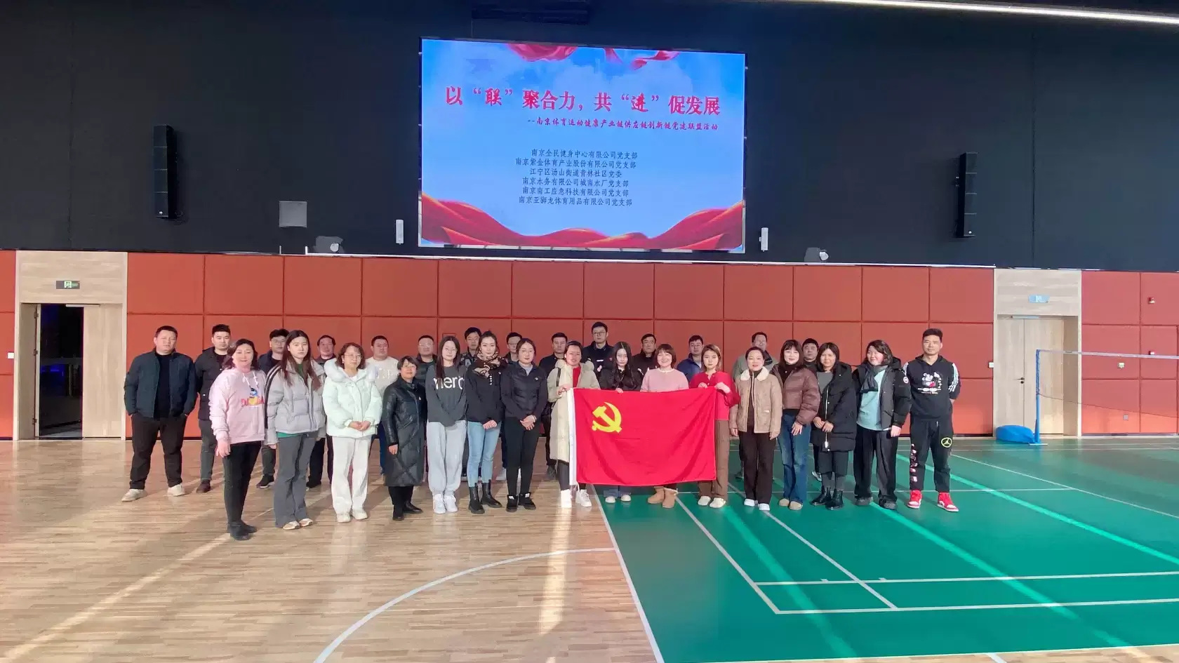 2023-12-25 15 549为推进体育运动健康产业链供应链创新链党建联盟建设走深走实,12月22日下午,南京全民健身中心有限公司党支部、南京紫金体育产业股份有限公司党支部联动江宁区汤山街道青林社区党委、南京水务有限公司城南水厂党支部、南京南工应急科技有限公司党支部、南京亚狮龙体育用品有限公司党支部走进青奥黑馆运动中心,开展“以联聚合力,共进促发展”党建共建交流活动。