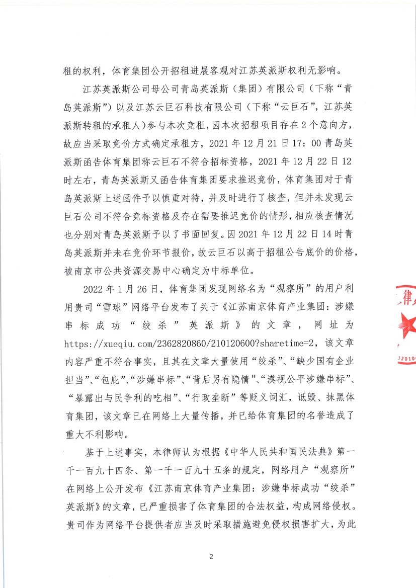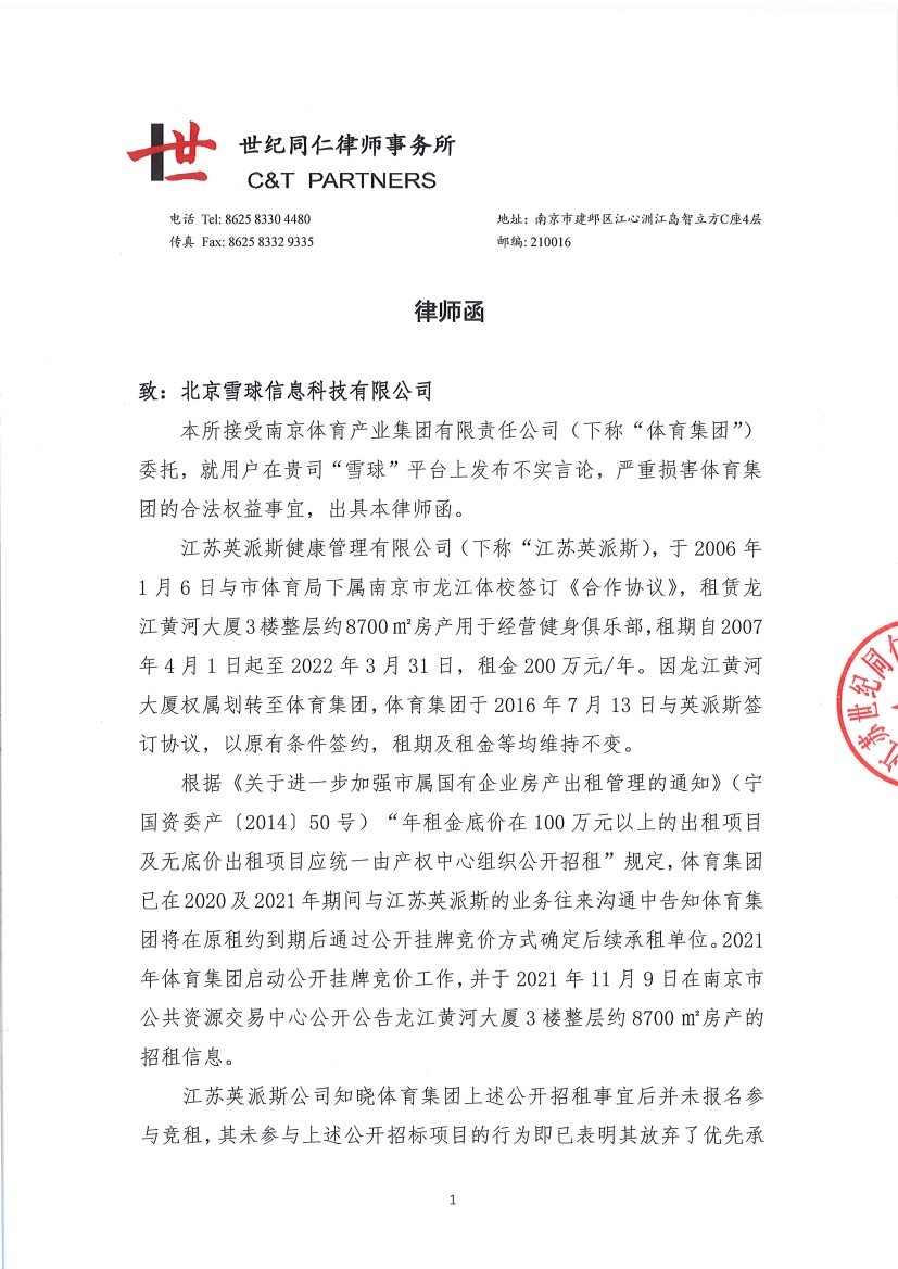 » 致北京雪球信息科技有限公司律师函