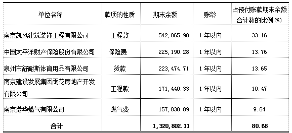 (2)按欠款方归集的期末余额前五位的预付账款情况: