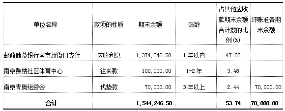 (4)按欠款方归集的大额其他应收款情况