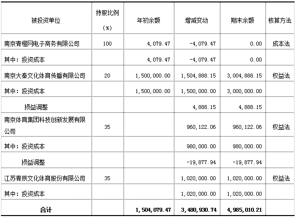 本期财务报表合并范围包括公司及公司的全资子公司青奥产业南京有限公司、 南京体育产业资源配套服务中心有限责任公司、南京龙江体育投资管理有限公司、南京龙江体育文化传播有限公司、南京全民健身中心有限公司和控股子公司南京紫金体育产业股份有限公司、南京体育集团场馆运营管理有限公司。