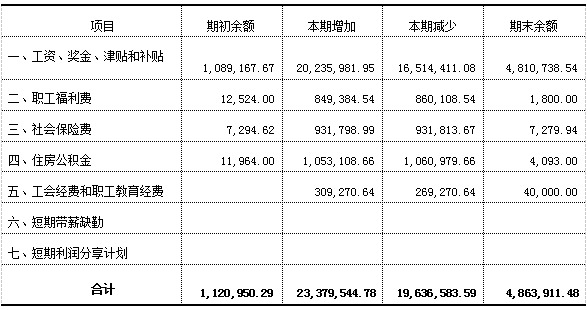 (2)短期薪酬列示: