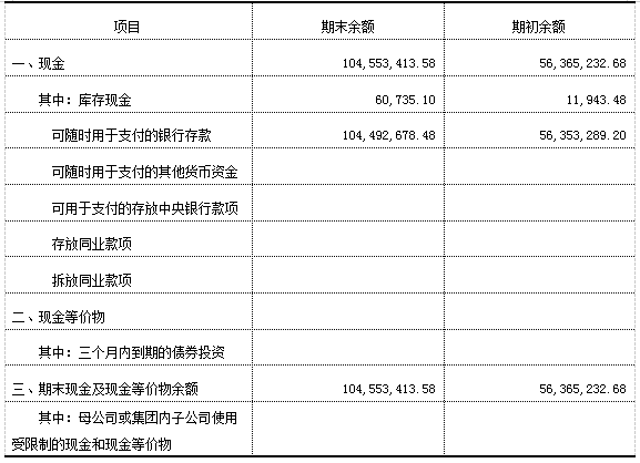 本公司现金包括库存现金、可以随时用于支付的存款;现金等价物包括本公司持有的期限短(一般指从购买日起三个月内到期)、流动性强、易于转换为已知金额现金、价值变动风险很小的投资。