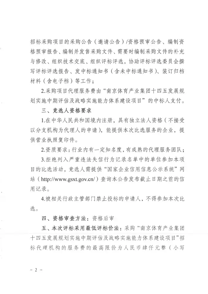 关于采购“南京体育产业集团2023年度经济责任审计项目中介机构选聘”项目招标代理服务的比选邀请公告
