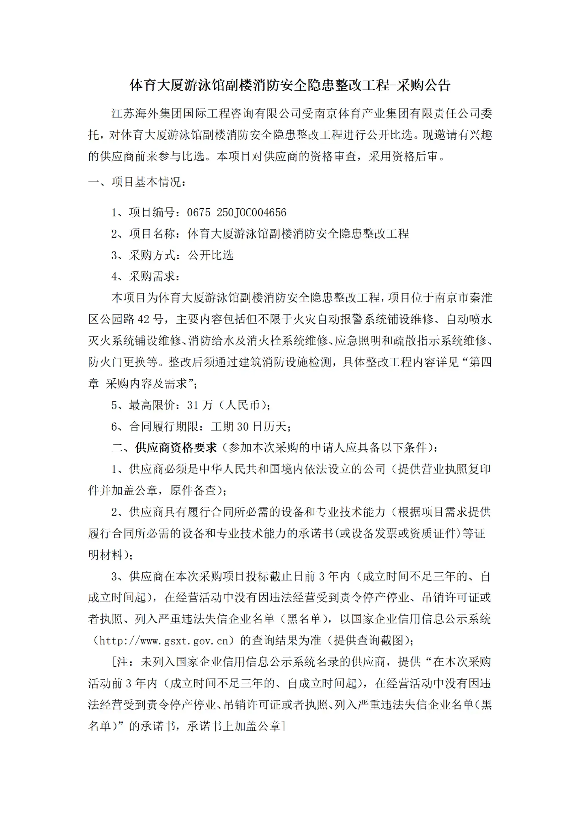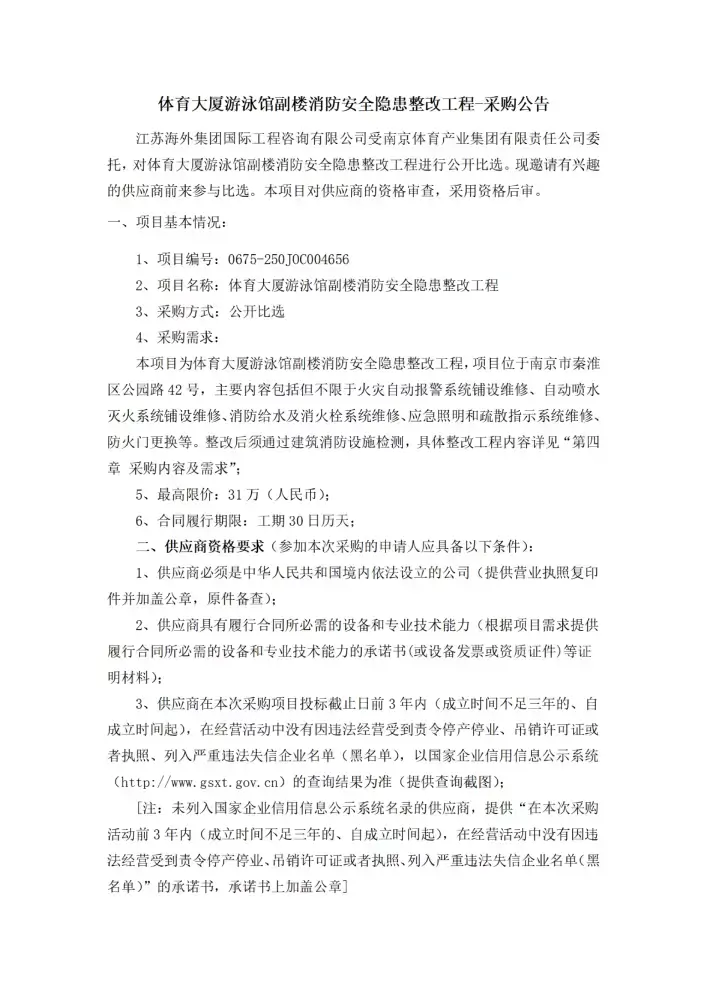江苏海外集团国际工程咨询有限公司受开云体验app官方入口委托,对体育集团2025年青奥体育公园生产安全事故应急演练项目进行公开比选。现邀请有兴趣的供应商前来参与比选。本项目对供应商的资格审查,采