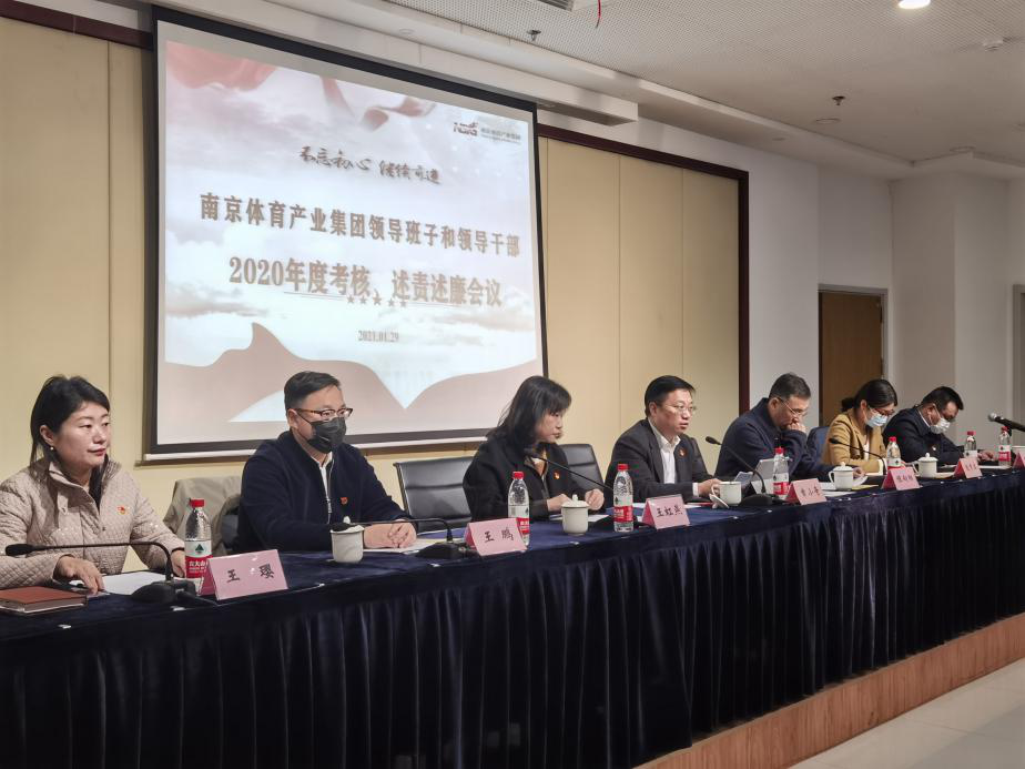 3.开展领导干部考核评议进行思想宣贯。2021年1月29日,集团召开了2020年领导班子和领导干部年度考核、党员领导干部述责述廉会议,进一步统一了思想,提高了认识。2021年,体育集团将继续以习近平新时代中国特色社会主义思想为指导,深入贯彻习近平总书记视察江苏时的重要指示精神,全面落实新时代党的建设总要求,不断推进全面从严治党,在新发展格局重塑中抢占先机。集团党委将率领全体干部职工秉持体育让城市更美好的初心,牢记市委市政府交办的三项任务,立足市属唯一体育健康产业平台定位,坚持“溯源、整合、创新”理念,做好“坐商转行商、线下转线上、单打转抱团、存量转增量”四个变换,用“激情、执行、格局、创新”迈出引领全市体育产业十四五高质量发展的坚实步伐,以争当表率、争做示范、走在前列的新业绩,谱写体育产业新的历史篇章。