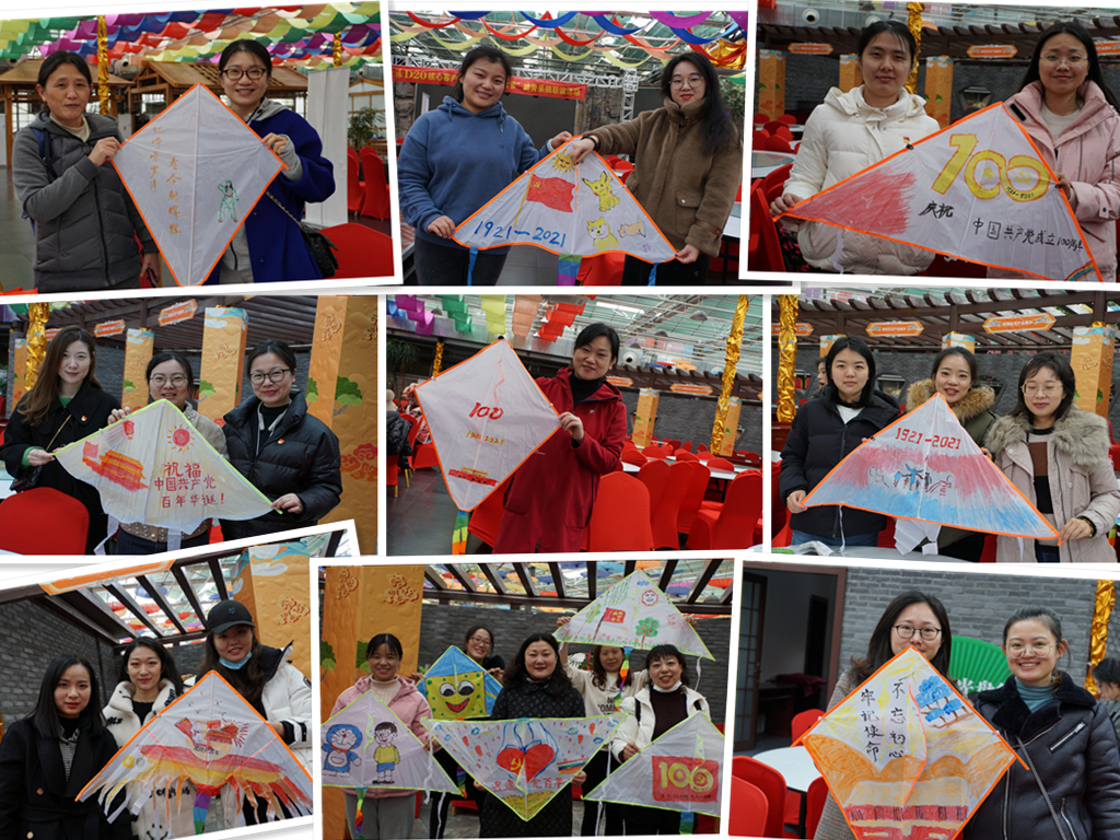 女员工们通过手绘风筝,重温中国共产党的百年光辉历程,并在园区内将风筝放飞,以此寄托对党的热爱和国家发展的希望,让红色精神洒满大地。