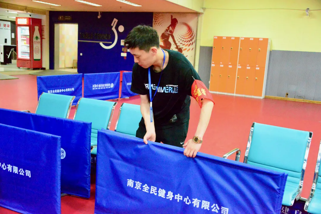 比赛前一天,比赛主场馆因正常对外运营,赛前场地布置工作要在晚上九点闭馆后才能开始,地面清洁、球台摆放、标识张贴……直到凌晨两点同志们才陆续离开球馆,仅仅五个小时后同志们再一次来到球馆为正式开赛做最后一次巡检。