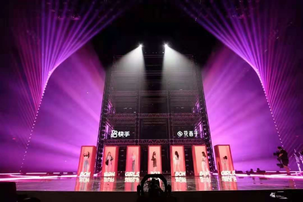 本次晚会采用水舞台和地屏舞台交替变换的双舞台设计,最引人注目则是舞台中央的“摩天大楼”设计。“摩天大楼”由多块大屏组成的格子间方块楼组成,楼中每一个格子都是一个直播间,快手达人则在直播间与线上观众进行互动。与其他电商晚会大屏小屏场景各自独立不同,快手616真心夜将直播间直接搬上舞台,观众可以看到晚会表演和直播带货同步进行,这样别出心裁的舞台设计成就了一份交互式的美感。![]()