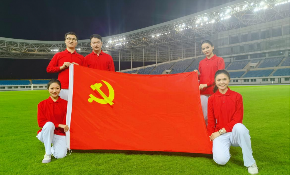 在节目尾声环节,场馆公司党支部5名党员与其他来自三省一市的共2021名青年代表及党员,与著名歌唱家廖昌永一起唱响《百年》。恢弘的交响乐与嘹亮的歌声汇成代表着热血与青春的赞歌,唱响对中国共产党百年华诞最诚挚的祝愿。
