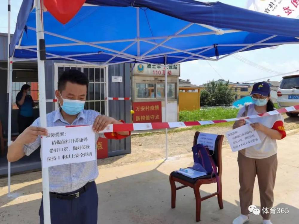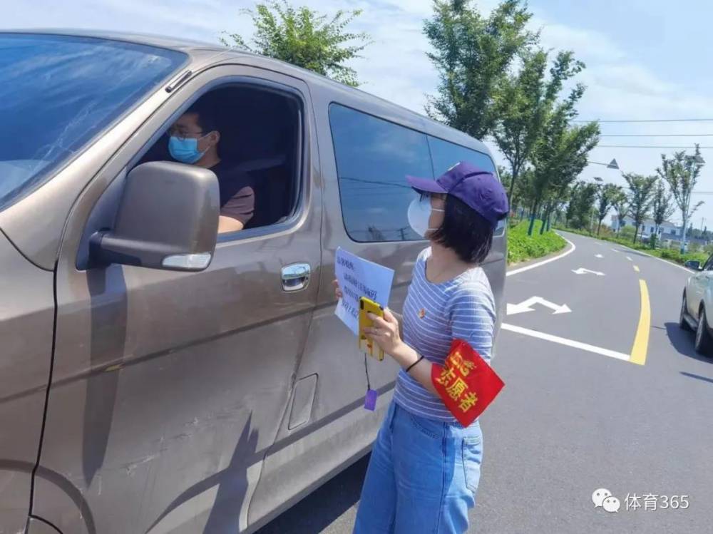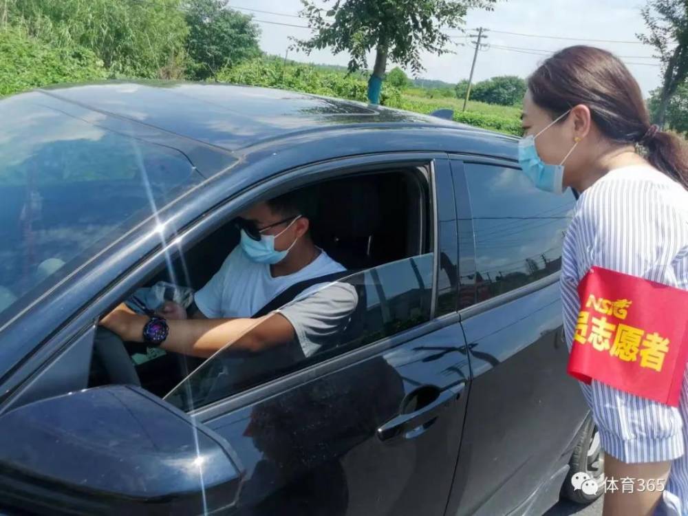 乡间道路无遮无挡,热浪滚滚,地面温度逼近55℃,先锋队兵分三路,严把村口关卡,三岔路口来往车辆众多,查验车辆来往人员苏康码、测体温、引导市民有序登记检测信息......在到达现场后,体育集团志愿者们第一时间进入了各自岗位中,仅仅2分钟,志愿者大汗淋漓,口罩湿透,大家戴上草帽继续工作……![]()