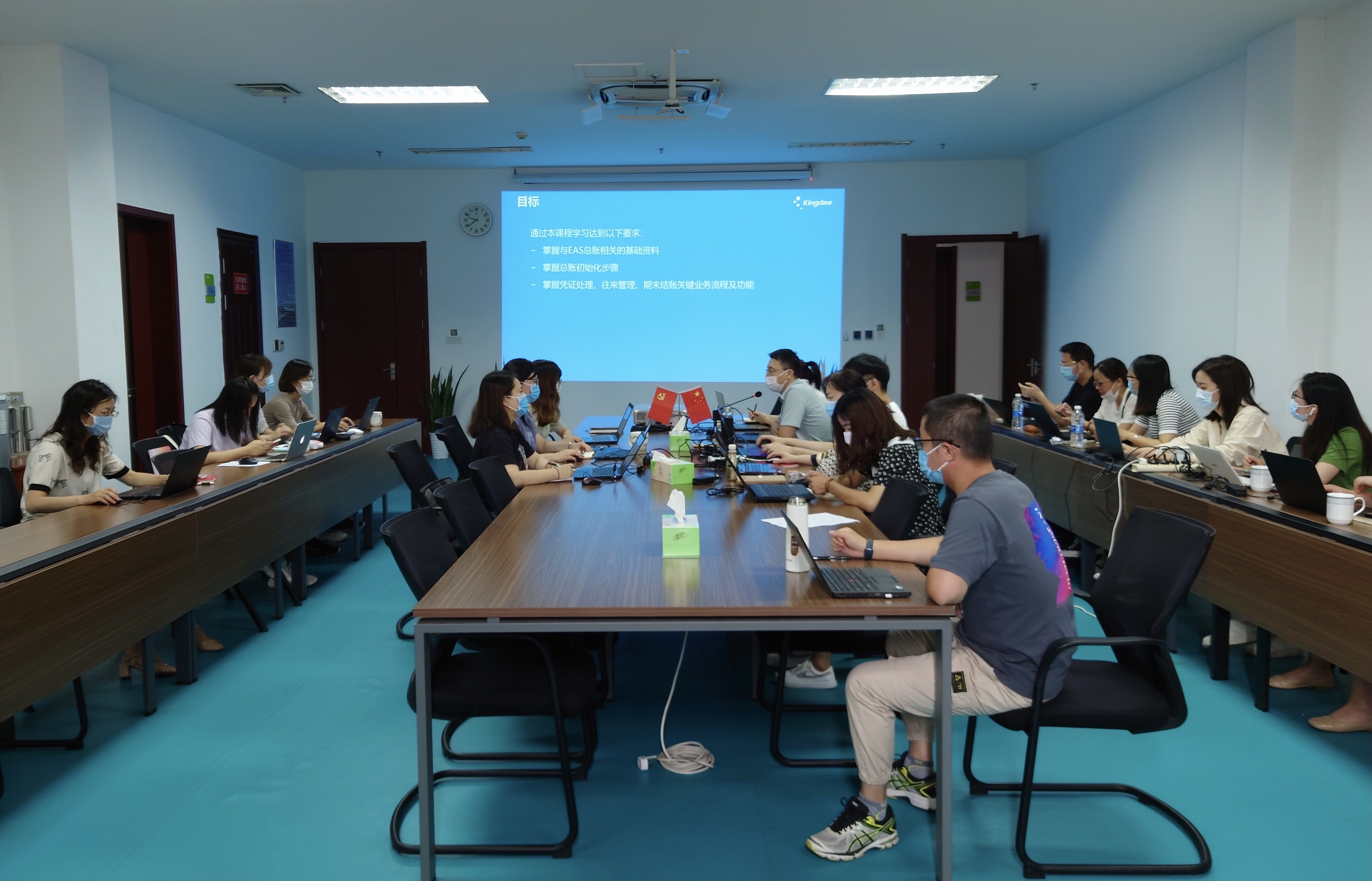 此次培训分为两个专题。9月8日,金蝶软件公司高级实施顾问张小飞受邀针对核算系统进行了培训,培训通过“以讲加练”的形式进行:上午对软件框架、初始化步骤及关键业务处理要点等进行了讲解,下午参会人员现场试行了软件操作,软件开发工程师协助解决操作中出现的各种问题。9月9日的预算系统培训,主要围绕系统中收入、费用、筹资等各类预算表格编制等进行要点讲解及操作演示。