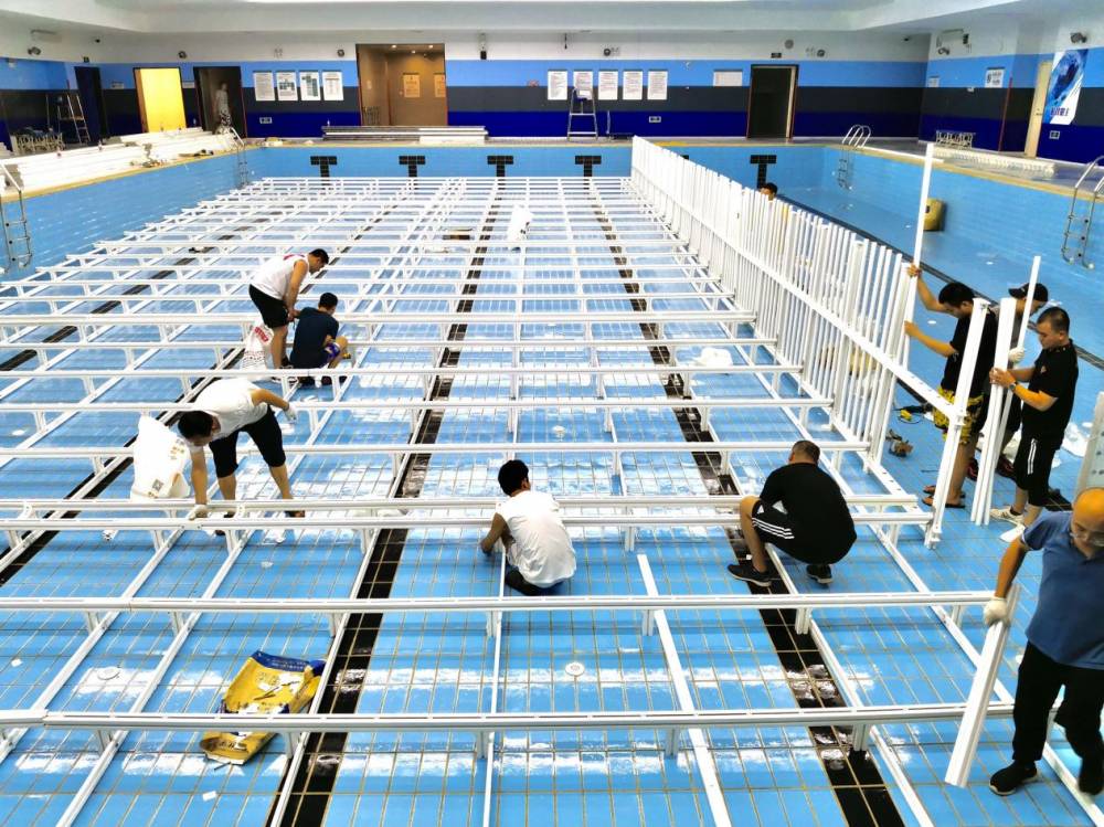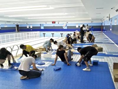 南京外国语学校方山分校游泳馆作为体育集团全民健身连锁项目的第12家场馆,工程改造过程受到疫情严重影响,遇到了各种困难。供应商不能送货,全民人就自己开车去市场拉;请不到工人,全民人就自己动手干;没有水电工,就从全民健身连锁各场馆抽调师傅施工;馆内防滑垫铺设工作更是发动了江北、紫东、建邺三个场馆的20多名员工前往支援!为了保障开馆,全民人奋战在一线前沿,付出着更多的辛苦,只为带给校方一份安心和踏实。