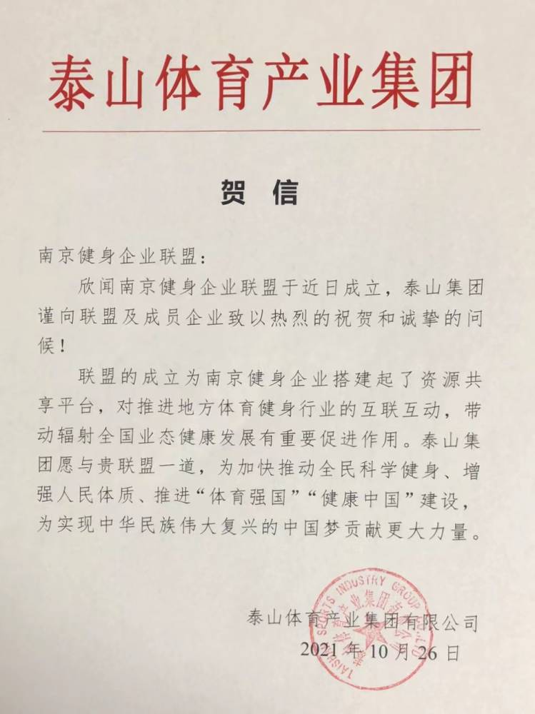 10月27日下午,在南京市体育局支持指导下,南京健身企业联盟成立大会在南京全民健身中心顺利召开。南京市体育局体育产业处处长陈爱玲、南京体育产业联合会轮值主席薛由惠、南京体育产业集团副总经理王鹏,以及来