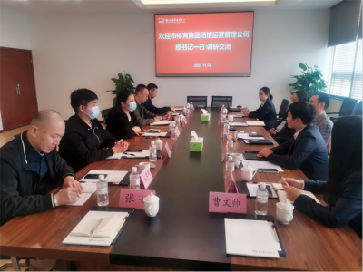 2021年10月27日下午,体育集团场馆公司党支部书记、董事长缪晨虹率公司领导班子及业务骨干一行7人到南京东部园林绿化建设发展有限公司对标学习。