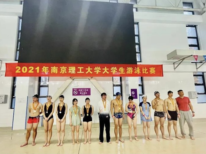 南京理工大学大学生游泳比赛为南京理工大学传统赛事之一,由于场地限制等客观因素影响曾一度中断,今年恰逢新游泳馆投入使用,让这项校园传统赛事得以延续和传承。本次赛事由南京理工大学体育部主办,由南京全民健身中心有限公司紫东分公司协办,设有自由泳、蛙泳、蝶泳、仰泳、混合泳等5种泳姿共计11个比赛项目,决出金牌20枚,银牌15枚,铜牌15枚,共计50枚奖牌。学校体育部主任等相关领导出席观看了本次比赛,并为获奖运动员颁奖。