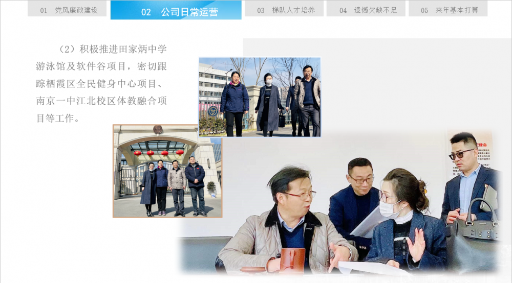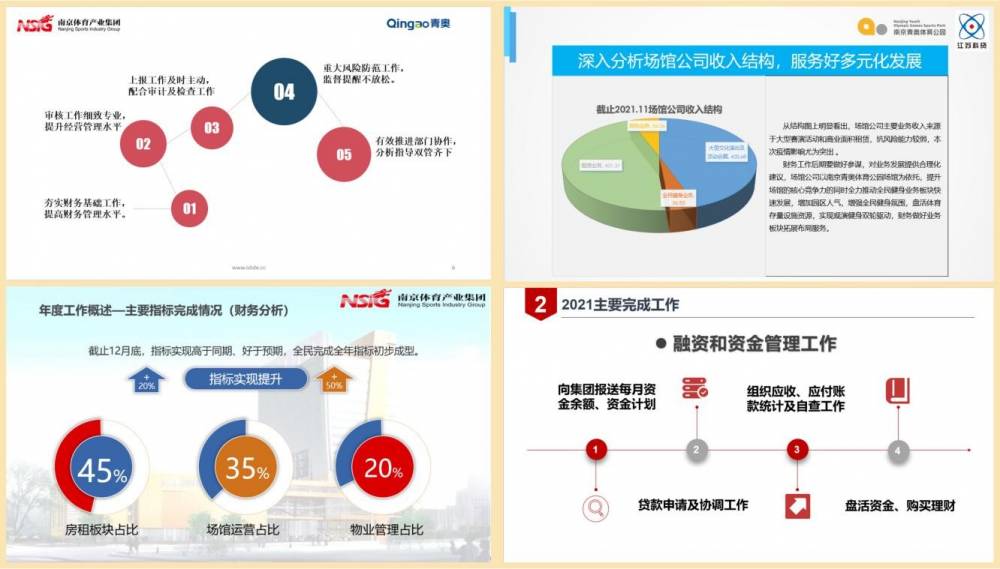 12月30日,2021年度场馆公司年终总结汇报会在南京青奥体育公园体育场5楼青奥空间召开,集团总经理、党委副书记程向阳、集团副总经理、党委委员蒋铭、集团党群工作与人力资源部部长、工会副主席赵霞出席会