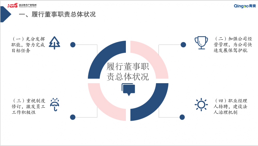 集团总经理、党委副书记程向阳对各企业班子及董事的述职逐一进行点评并提出改进方向。他指出,针对集团现阶段发展情况,结合市国资委最新要求,集团全体要做到聚焦定位,进一步统一思想、激发活力。要聚焦主业,以赛事活动为抓手,整合资产资源、发挥优势经验、创新商业模式。要聚焦特色,立足建设功能平台,进一步服务产业、民生和城市建设,创新市场化运营机制。