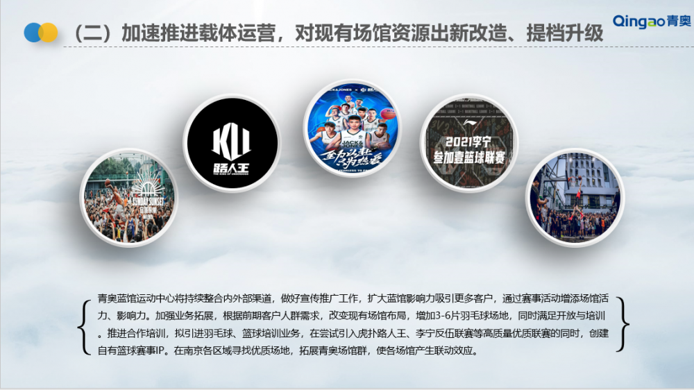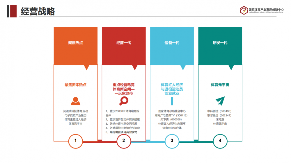 二是要在提升产业竞争力、打造产业载体上下功夫。构建行业金融服务矩阵,明确集团产业投融资平台的功能定位。创新模式深度参与城市体育基础设施建设,加快新建、旧改载体建设。