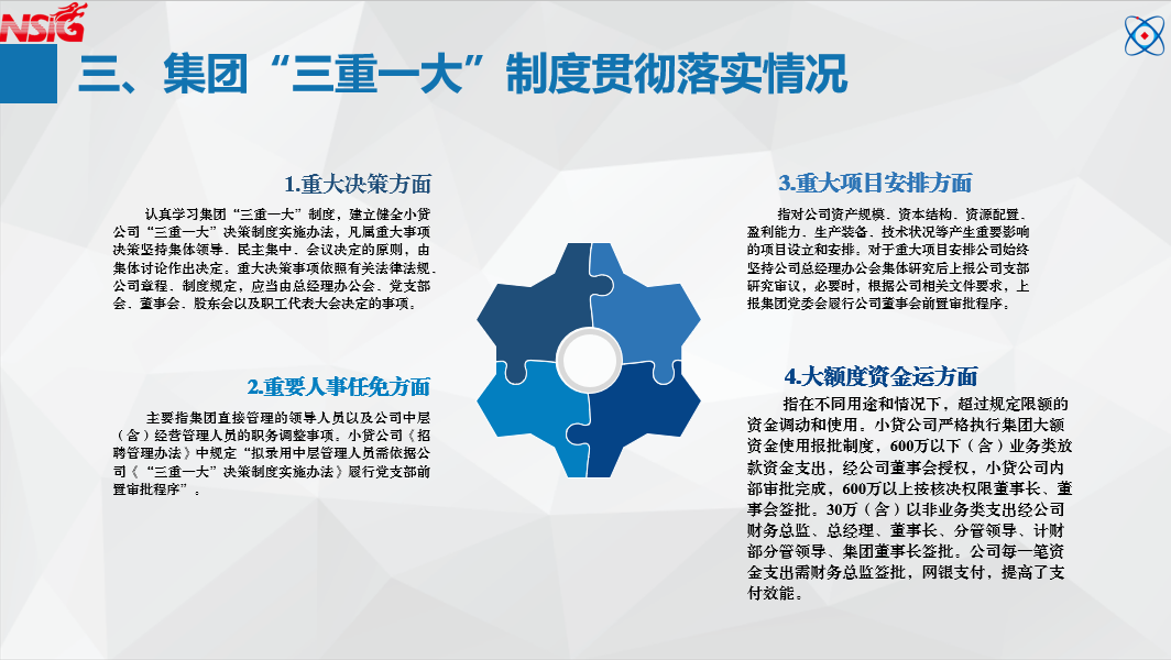 会上,7家子企业总经理结合企业年度重点任务完成情况、指标客观增减因素、完成目标任务采取的保障措施、反思存在的问题及下一步工作计划等内容进行了深度剖析。4位委派财务负责人从贯彻执行国家财经法规、建立健全派驻公司财务制度等方面进行了汇报。4位委派董事代表就集团“三重一大”贯彻落实、履职尽责情况、企业遗留问题及解决思路等内容进行了述职。