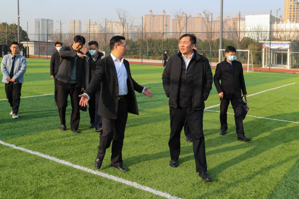 2021-12-24 12 71712月22日,市政府胡万进副市长以及市体育局、教育局、国资委、财政局、江北新区分管领导一行调研体育集团,并在实地考察体验体育集团自主研发建设的5G无人值守智慧球场后召开工作座谈会。签约单位领导南京体育学院党委书记朱传耿、江宁开发区管委会主任张会祺、苏交科集团总裁朱晓宁及相关企业负责人出席,市政府副秘书长吴秀亮主持会议。