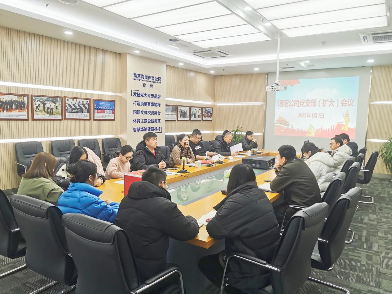 2022-01-10 2 6241月7日,场馆公司党支部(扩大)会在南京青奥体育公园中央管理平台召开,支部全体党员、公司班子成员及主管级以上人员参加本次会议。会议由公司党支部书记、董事长缪晨虹主持。