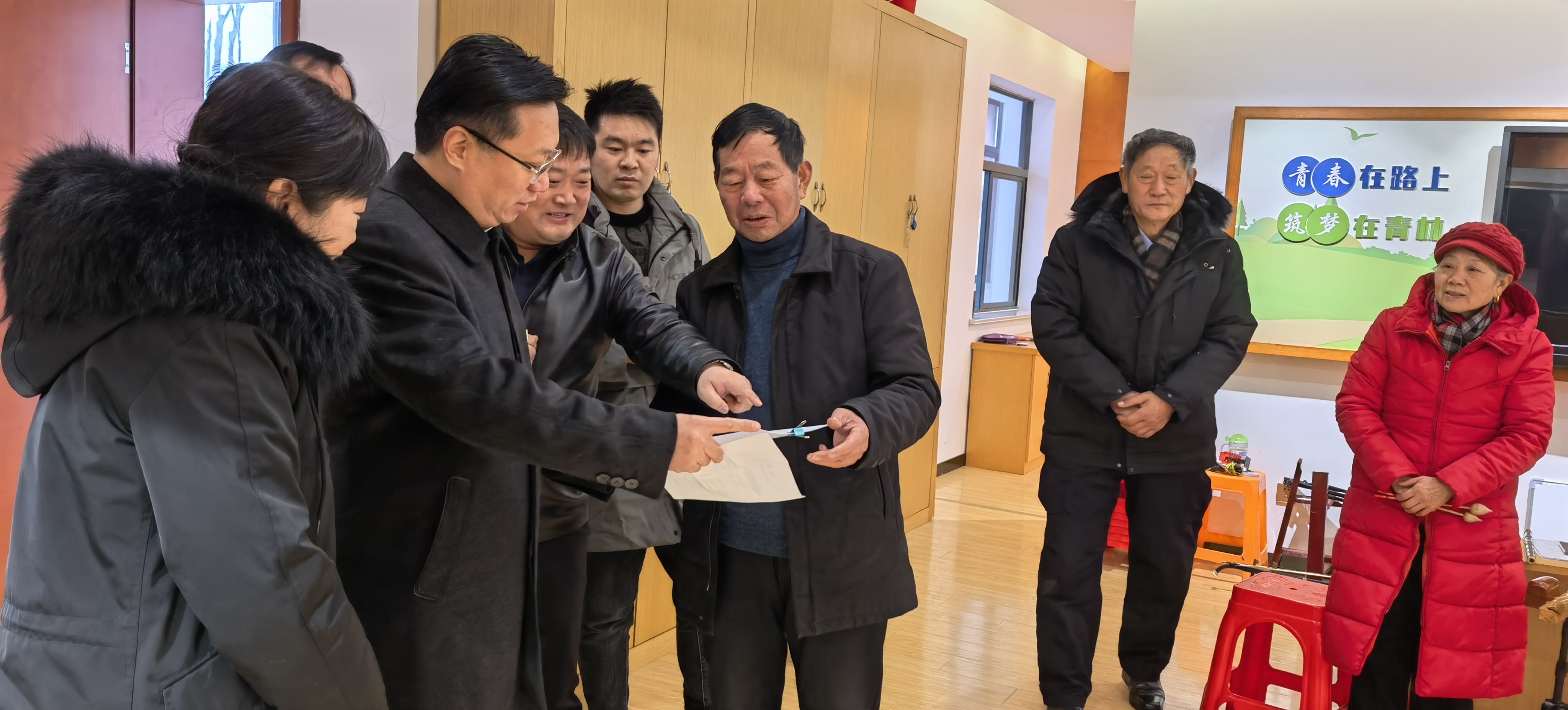 2022-02-14 4 4402022年2月11日,体育集团党委书记、董事长章小奇、党委副书记王虹燕带队赴集团派驻“第一书记”所在社区——江宁区汤山街道青林社区走访调研,实地了解社区发展情况和驻社区“第一书记”工作开展情况。汤山街道党工委副书记、政协工委主任王振友一行陪同。
