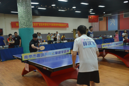 趣味乒乓球草根争霸赛是中心的品牌赛事,已经连续成功举办了5届,形式新颖、趣味十足,区别于正常的乒乓球比赛用具,趣味乒乓球草根争霸赛采用的是大球、高网、光板大球拍进行,比赛不设门槛,不论技术高低,男女老幼,只要你喜爱乒乓球这项体育运动都可以报名参赛,一试身手。赛前,全民公司通过南京日报趣动吧、南京发布、365体育网等有影响力的媒体发布报名信息,又与新组建成立的南京体育产业集团团委携手承办,到报名截止日期,共有来自社会各界以及集团团委的百余名选手报名参赛。