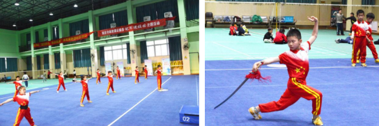 赵澄是孩子们心中的偶像,看到心心念念的偶像来到学校,学生们激动不已,就连做动作都要比平时认真许多,希望将自己最好的状态展现给冠军,博得阵阵称赞。偌大的室内体育馆中,赵澄与同学们以“武”会友、向“武”求真。赵澄不吝指导,希望同学们能领会武术除了是一项体育运动外,更是一种精神。随着主题活动正式开始,学生们从个人到团体先后登台表演拿手绝活,既有三路长拳等徒手武术项目,也有初级剑、初级刀等器械武术项目。看着学生们认真展示动作,赵澄一边提醒“每一个动作都有标准,哪怕是一拳一掌一指,都要力求做到身法到、动作到、精神到、劲力到!”一边以身示范,精彩的动作一度引来围观同学的喝彩。虽然学生们对这种“武学秘籍”还不能完全明白,但都严格按照赵澄要求的规范执行。![]()