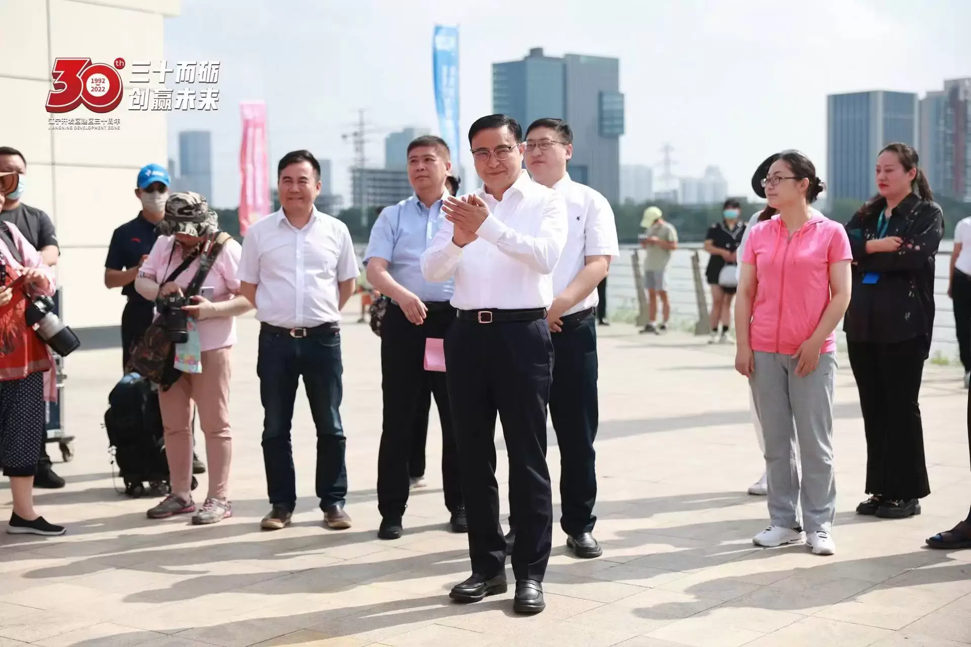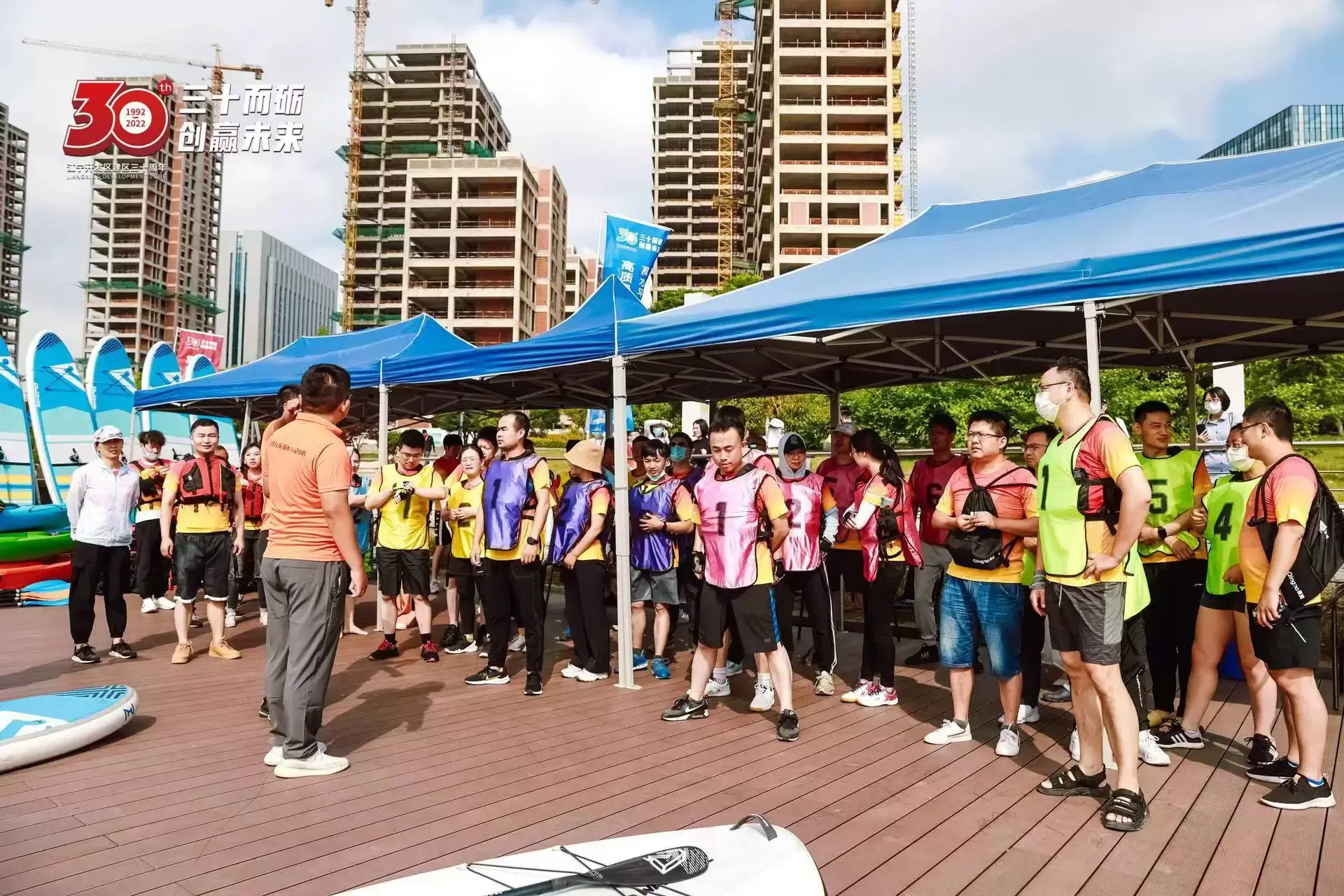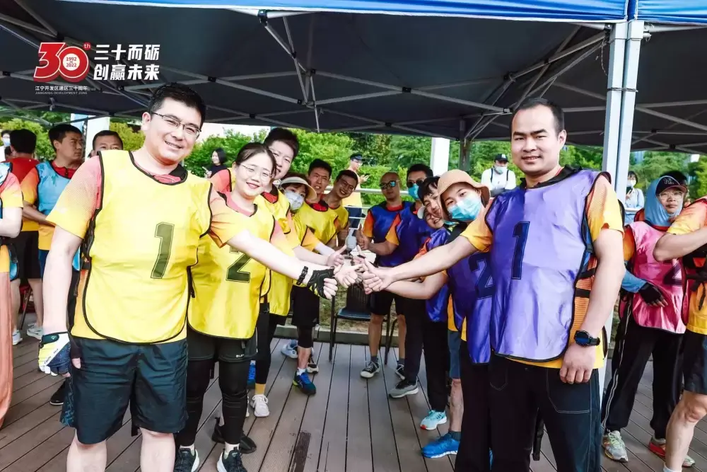 本次活动以江宁开发区成立三十周年及青奥水上运动中心九龙湖基地开业为契机,邀请园区企事业单位参与其中,共吸引九龙湖国际企业总部园12支精英团队120名运动员参加。江宁开发区管委会主任张会祺、南京体育产业集团副总经理王鹏等领导出席开业仪式,并共同为青奥水上运动中心九龙湖基地揭牌,该基地由南京体育产业集团与中体产业集团共同运营推广,将助力于江宁开发区进一步优化营商环境,打造城市新名片。