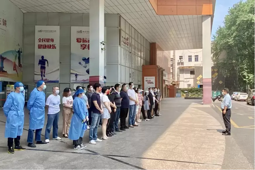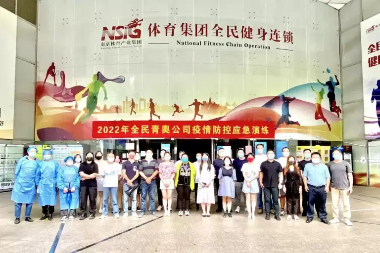 2022-06-22 2 109本月是第21个全国安全生产月。6月21日下午,全民公司、青奥公司在南京全民健身中心南广场开展了2022年度新冠肺炎疫情防控应急演练,旨在提高员工安全风险防范意识,提升公司整体疫情防控应急处置能力。