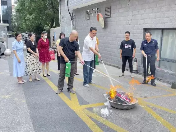 最后,模拟火灾发生时场景,消防人员指导大家正确使用灭火器,在场人员轮流操作,切身体验使用灭火器扑灭火源过程,做到熟练掌握灭火器使用方法和使用灭火器注意事项。