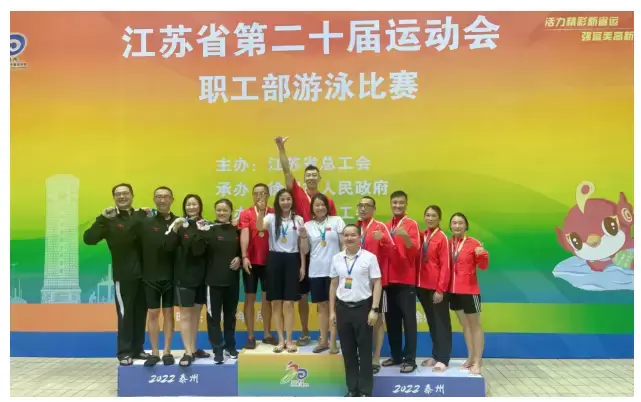 2022-08-23 2 476江苏省第二十届运动会职工部游泳比赛8月18日在徐州奥体中心开幕,经过两天的激烈角逐,南京市总工会代表队获得11枚金牌以及团体总分第一的优异成绩,而这份成绩单里也有体育集团的一份功劳。
