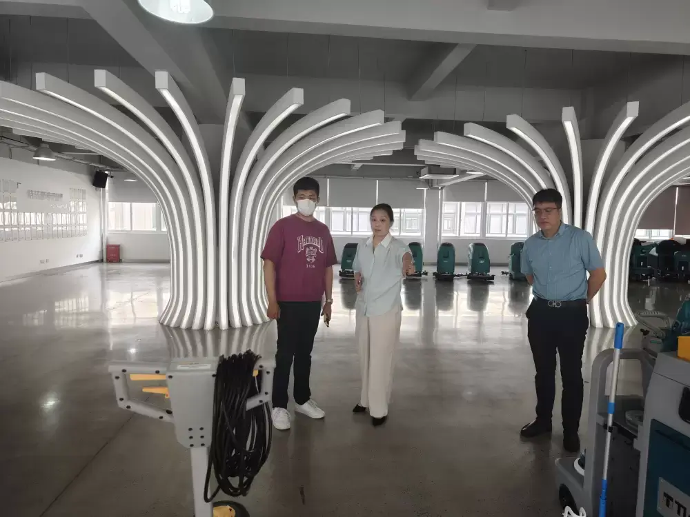 2023-06-9 2 674为提高青奥体育公园智能化水平,提升园区清洁效率,降低人工成本,2023年6月7日上午,场馆公司副总经理杨司祺带领公司物业服务中心、全民健身服务中心相关人员前往南京特沃斯清洁设备有限公司调研学习。