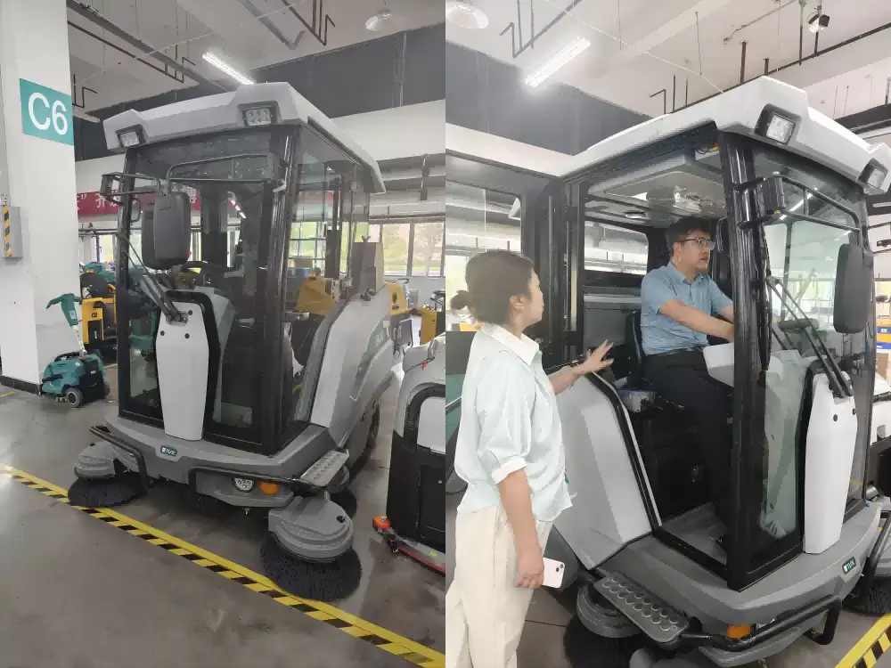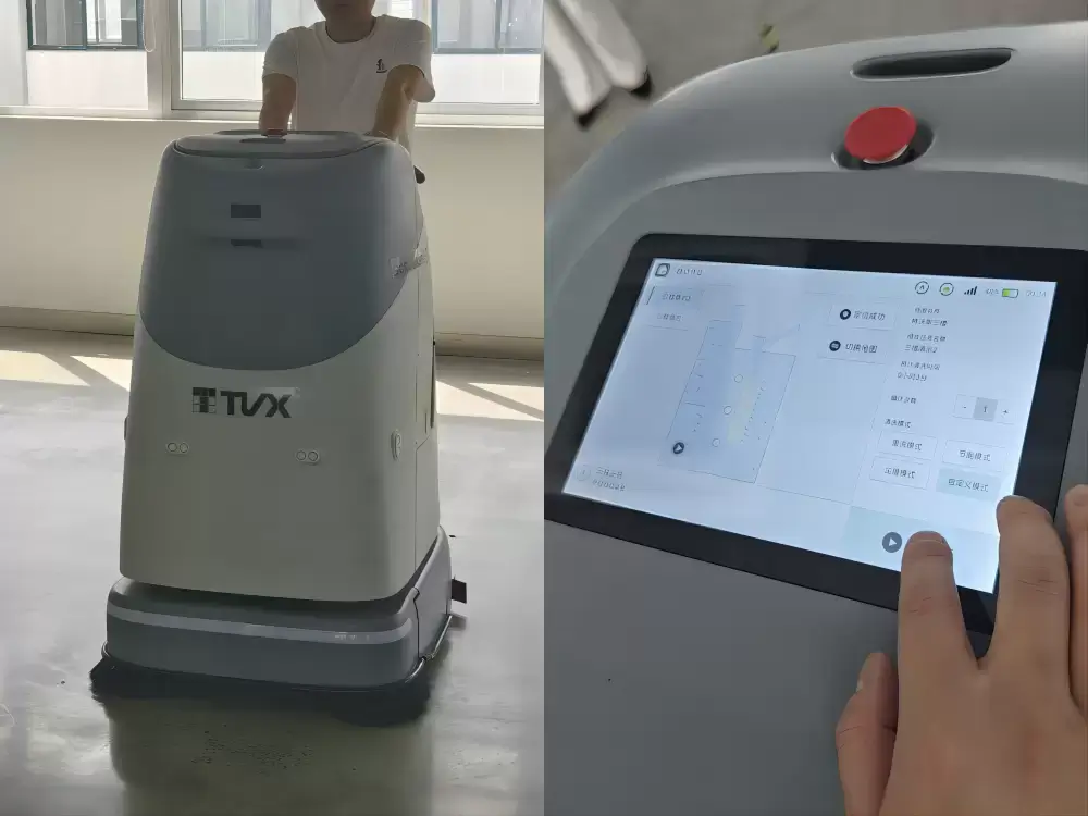 南京特沃斯相关负责人首先向场馆公司一行展示了洗地机、扫地机、消杀喷雾器、智能清洁机器人为主的专业清洁设备,并现场演示了智能清洁机器人的运作方式和操作逻辑。