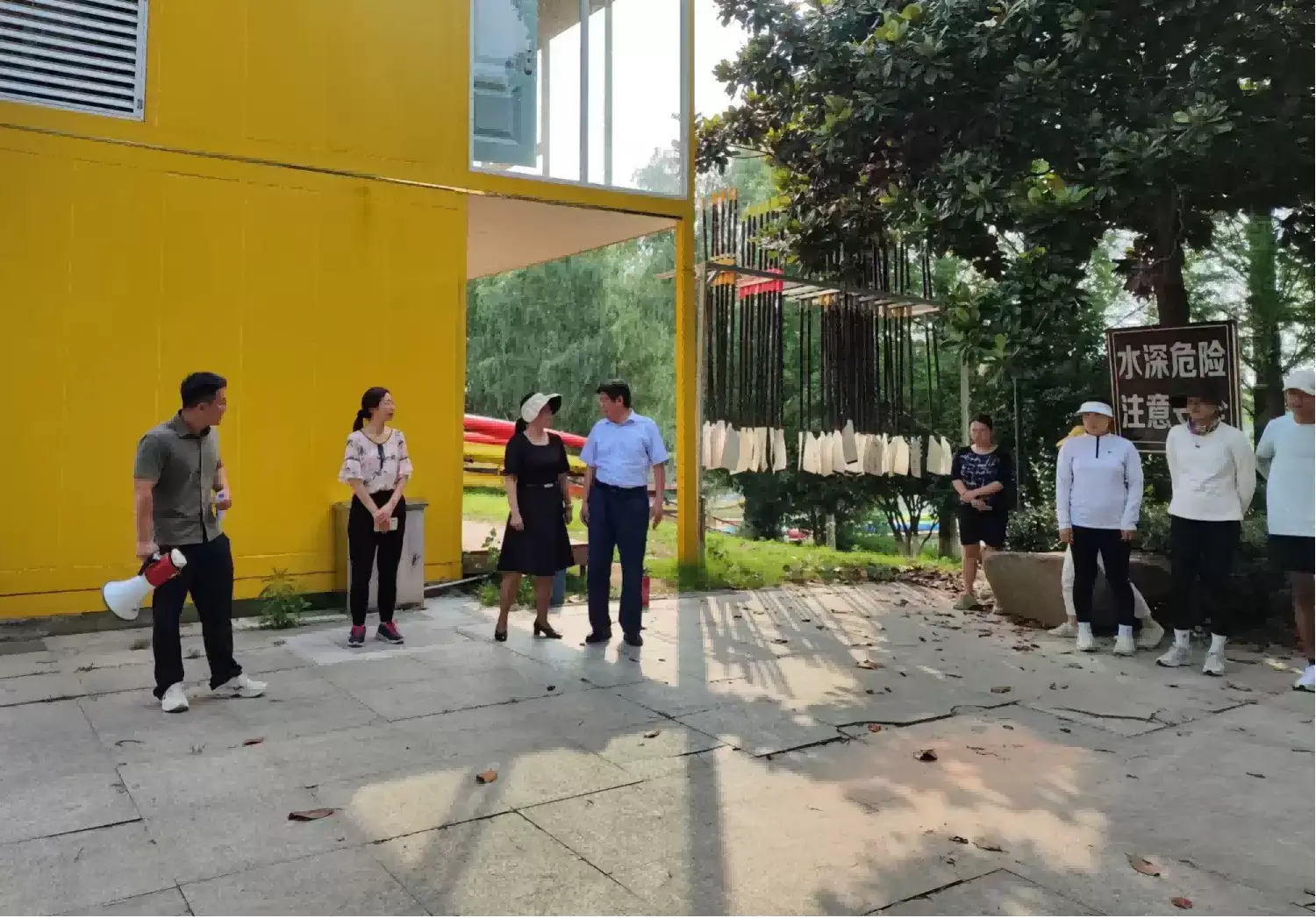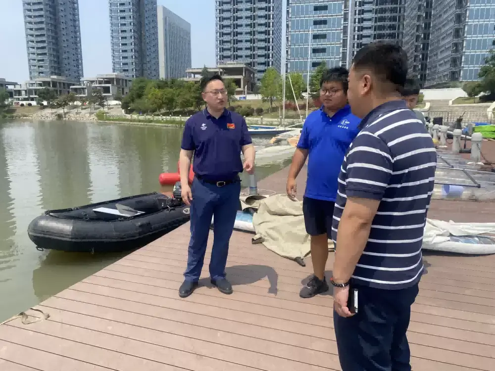 集团副总经理王鹏来到青奥水上运动中心九龙湖基地,深入了解水上游乐项目应急预案、救生保障等情况。