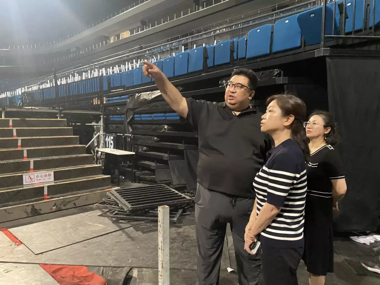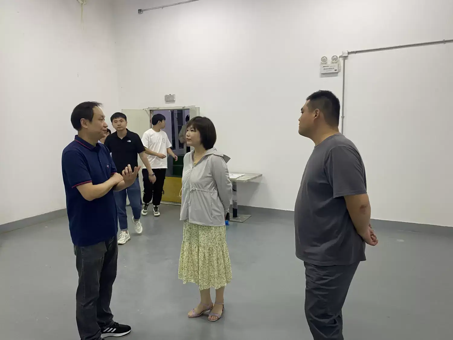 集团副总经理蒋铭前往体育大厦,检查重点场所消防安全、电气设备安全、大楼外立面防护、露天网球场安全防护等。