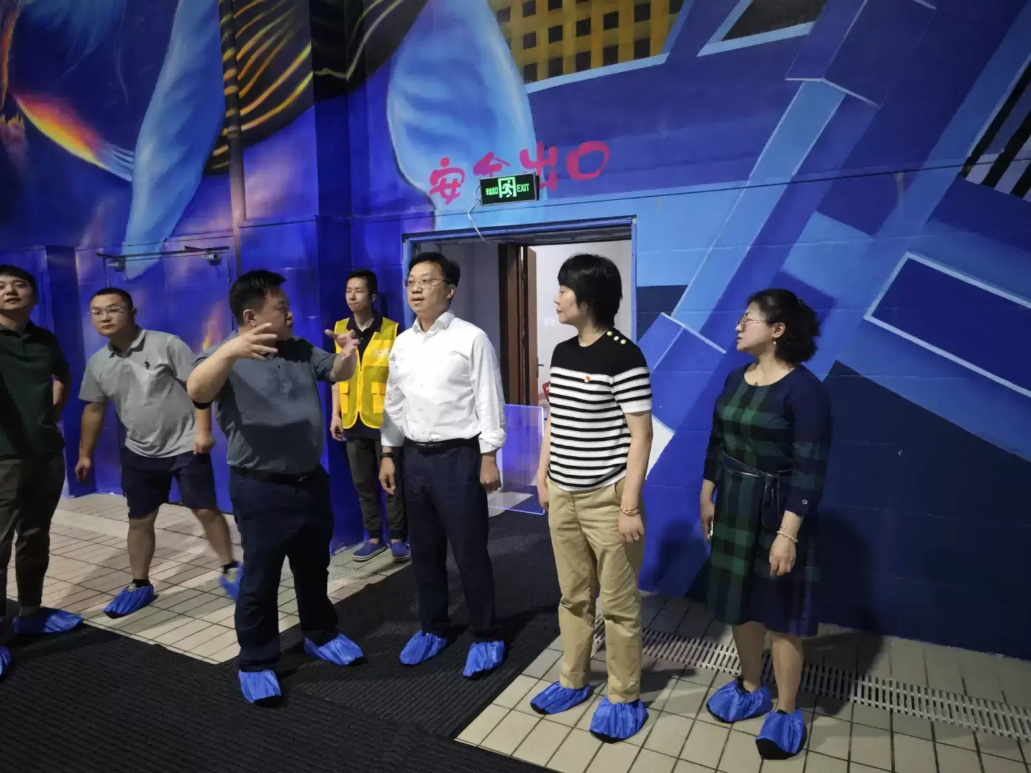 集团纪委书记滕岷军来到青奥黑馆,细致查看场所消防安全等。