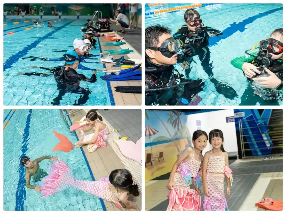 “妈妈你看!我现在和小美人鱼公主一样能去水里游泳了!”“哇!这个鱼尾好漂亮呀!”“妈妈,我有它就可以潜水啦!”在安全知识宣讲结束后,孩子们纷纷穿上提前准备好的“美人鱼”鱼尾,红扑扑的脸上“挂”满了兴奋,迫不及待地向站在一旁的爸爸妈妈展示。美人鱼、自由潜、水肺潜水运动轮番上演,在教练耐心教导下,孩子们化身“小小潜水员”,成为海洋大使。“很感谢有这么一次特别的机会,能让孩子体验潜水,他很喜欢。”家长说道。活动结束,大家一起拍照留念,用相机记录美好时刻。